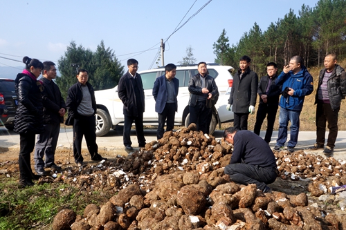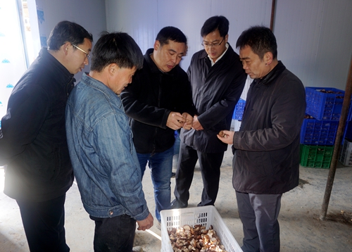 12月10日,在广元市利州区委常委、总工会主席殷扶炯陪同下,中国科学院成都分院党组副书记、纪检组组长王嘉图一行来到利州区三堆镇龙池村,考察了成都分院对口帮扶的食用菌项目。
