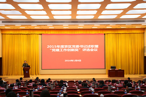2016年1月8日,中国科学院京区党委举办2015年度京区党委书记述职暨“党建工作创新奖”评选会。院党组成员、京区党委书记何岩出席会议并做总结讲话,京区党委组织员和京区各单位党委书记、党办主任、党务主管共140余人参加了会议。京区党委副书记、纪委书记乔均录,京区党委副书记房自正主持了会议。
