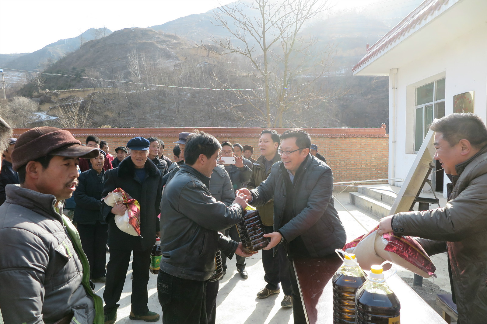 1月20日,中国科学院兰州文献情报中心主持工作的副主任曲建升一行赴双联联系村西和县洛峪镇袁付村开展“送温暖”慰问活动。曲建升代表中心党委、领导班子和全体职工向袁付村全体村民及家人表示节日的祝福。此次送温暖活动中,兰州文献中心为全村101户村民每户发放了一桶食用油、一袋大米,实现慰问全覆盖,受到村民的热烈欢迎。结合送温暖活动,曲建升等深入贫困户家中交流、座谈,详细了解了贫困户在2015年家庭经济状况和收入情况、致富的主要途径,鼓励他们增强致富信心,进一步理清精准扶贫精准脱贫和致富思路,紧紧抓住劳务输出、特色种植、规模化养殖的致富渠道不放手,通过辛勤的劳动,实现脱贫致富的目标。