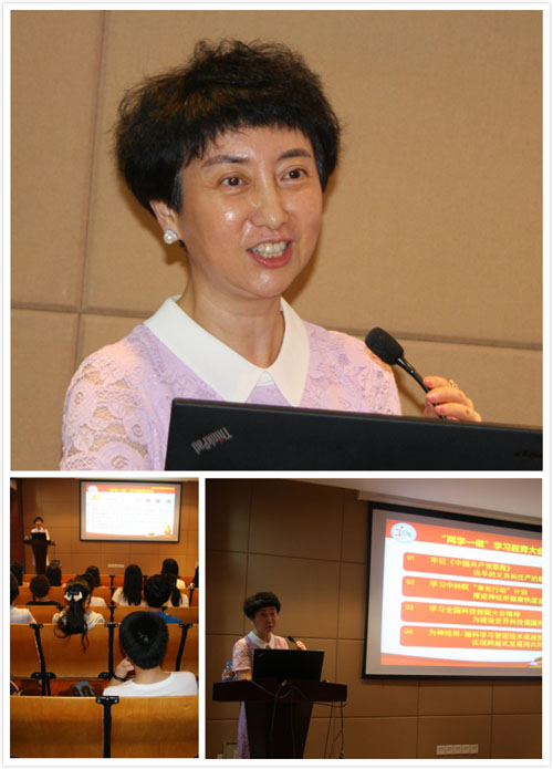 党委书记兼副所长王燕以《深入推进“率先行动”计划,落实“十三五”规划,推动神经所实现跨越式发展》为题,为全体党员讲党课,带领大家一起重温了《中国共产党章程》的主要内容,强调了党员应尽的八项义务和基本职责;全面解读了《中科院“率先行动”计划暨全面深化改革纲要》,介绍了中科院脑科学与智能技术卓越创新中心的情况和相关体制机制;传达了习近平总书记、李克强总理在全国科技创新大会上讲话的精神,分析了与神经所科研创新息息相关的具体内容;剖析了神经所针对“三个面向”所进行的战略布局与规划,列举了院地合作的具体措施与发展机遇。她希望全所党员能够认真学习党章党规,深刻领会系列讲话精神,努力做合格党员,为推进脑科学与智能技术卓越创新中心健康快速发展,为神经所实现跨越式发展,为建设世界科技强国而共同奋斗。