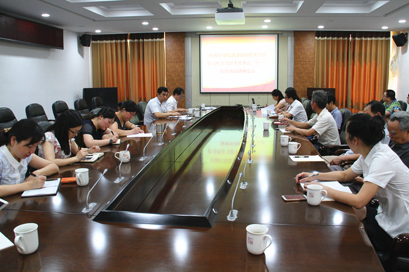 7月25日,中国科学院武汉分院机关党委召开“两学一做”学习教育专题会议,认真学习传达习近平总书记在庆祝建党95周年大会和“科技三会”上的重要讲话精神。武汉分院副院长、机关党委书记李衡,以及机关党委委员、各党支部委员近30人参加了会议。会议由分院机关党委副书记、分院教育处处长杜永成主持。
