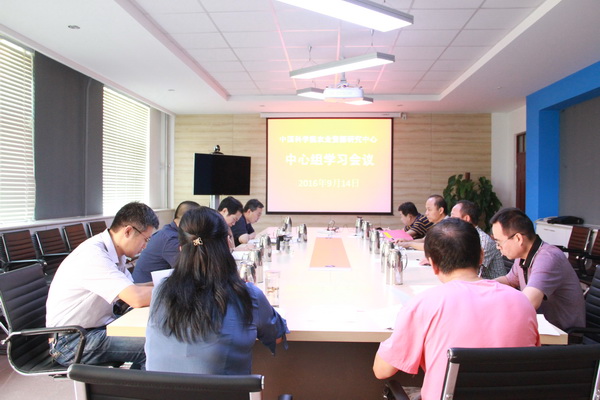 9月14日上午,中国科学院遗传与发育生物学研究所农业资源研究中心召开党委中心组学习(扩大)会议,会议的主题为深入学习领会中科院夏季党组扩大会会议精神和《中国共产党问责条例》。中心领导、党委委员和管理部门负责人参加了学习会。会议由党委书记赵军主持。