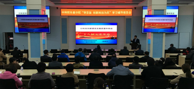 根据中共中国科学院长春分院分党组印发的《关于在全体党员中开展“两学一做”学习教育方案》部署,长春分院分党组于10月21日组织理论中心组学习扩大会,进行“两学一做”第四专题“学宗旨科技创新为民”学习辅导。长春分院分党组书记甘建国、各所站党委、纪委领导及处级以上领导干部、党支部书记等共计86人参加了报告会。会议由长春分院机关党委副书记于学锋主持。
