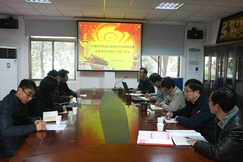 11月23日下午,中国科学院武汉病毒研究所召开党委(扩大)会议,传达贯彻落实十八届六中全会精神。会议由党委副书记、纪委书记、副所长肖庚富主持,所班子成员、党委委员、纪委委员参加会议。