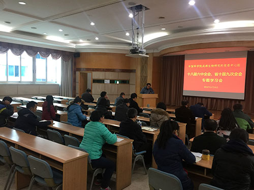 11月25日,中国科学院成都生物研究所党委中心组召开扩大学习会,专题学习十八届六中全会精神。党委书记、副所长叶彦主持学习会,党委中心组全体成员、支部书记、支部委员等40余人参加报告会。
