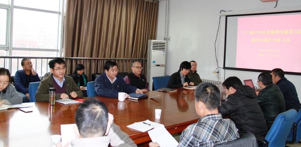 11月29日,中国科学院地球环境研究所党委召开中心组扩大学习会,专题学习党的十八届六中全会精神。在所行政领导班子成员、党委纪委委员、支部书记、中层以上干部参加了学习会。