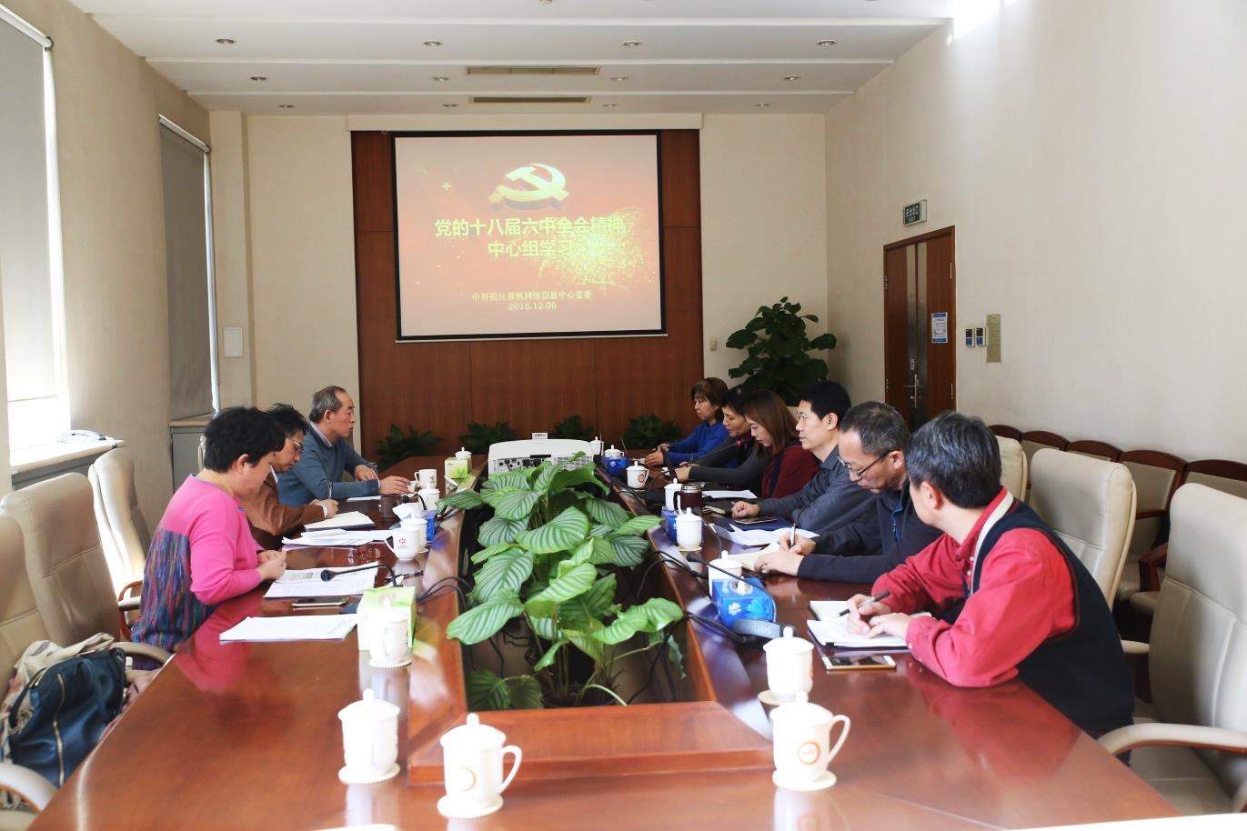 12月6日,中国科学院计算机网络信息中心党委召开十八届六中全会精神中心组学习会议,中心党委委员、纪委委员参加学习。会议由中心党委书记韩华主持。