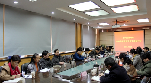 12月28日,中国科学院测量与地球物理研究所举办2016年度党支部工作交流研讨会。测地所相关负责人和党委、纪委委员,党支部委员共30余人参加会议。会议特邀中科院第一巡视组组长、原武汉分院分党组书记、副院长陈平平,中科院武汉植物园党委书记、副主任罗志强,中科院水生生物研究所所长助理、综合办公室主任吴青丽参加研讨交流。会议由测地所党委委员、综合办公室主任熊小敏主持。
