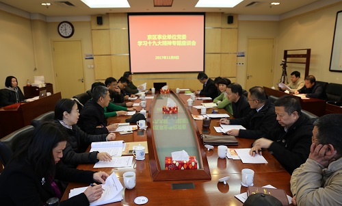 11月8日,中国科学院京区事业单位党委学习贯彻党的十九大精神专题座谈会在北京分院举行。会议由北京分院分党组书记、京区事业单位党委书记马扬主持,京区事业单位党政负责人共14位代表参加会议。