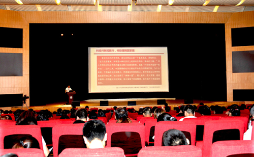 党委书记王华作了题为《学习总书记讲话 树立正确科技价值观 为建设创新型国家而努力奋斗》的大会报告,报告带领大家深刻学习领会习近平总书记的重要讲话精神,从创新是引领发展的第一动力、科技创新是提高社会生产力和综合国力的战略支撑、自主创新是中国发展的必由之路三个方面,回顾了科学技术革命在人类历史发展进程中的重要性,回顾了新中国成立以来我国取得的重大科技突破,分析了坚定不移走中国特色自主创新道路的紧迫性和必要性,并从集中力量办大事、提升创新能力、坚持以人才为本三个方面深入阐述了我国科技事业快速发展的成功经验。报告号召大家按照习近平总书记的要求,“把科学论文写在祖国大地上,把科技成果应用在实现国家现代化的伟大事业中,把人生理想融入为实现中华民族伟大复兴的中国梦的奋斗中”。