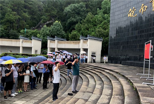 7月1日,党员们到皖南事变烈士陵园集中凭吊革命烈士,向无名英雄表达了由衷的敬意。在“皖南事变死难烈士永垂不朽”纪念主碑前,党委书记李国平带领新党员举行宣誓仪式,全体党员见证了这一庄严时刻。