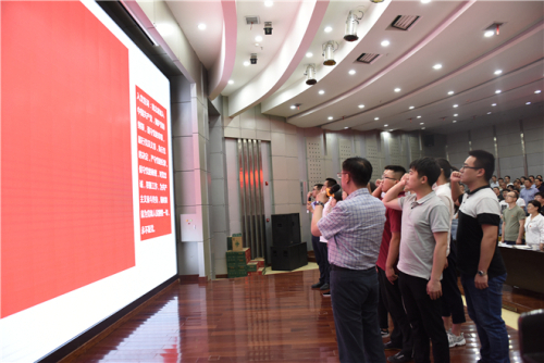 会上,举行入党宣誓仪式。党委委员、副所长周峰带领新党员学习了党章总纲和第一章中的“党员的义务和权利”等内容。10名新党员面向党旗,高举右拳庄严宣誓,光荣加入中国共产党,与会全体党员共同起立重温入党誓词,并为新党员佩戴党徽、赠送党章。