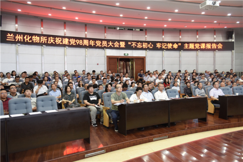 为庆祝中国共产党成立98周年,7月1日,中国科学院兰州化学物理研究所举办庆祝建党98周年党员大会暨“不忘初心、牢记使命”主题党课报告会。研究所党政领导、党委委员和全所在职职工党员、研究生党员、部分离退休党员以及民主党派代表等300多人参加大会。