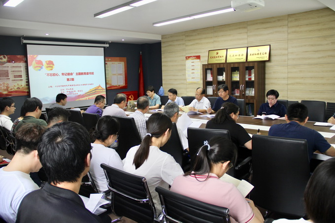 为深入开展“不忘初心、牢记使命”主题教育,推动党员干部和青年深入学习习近平新时代中国特色社会主义思想,根据中国科学院遗传与发育生物学研究所农业资源研究中心《“不忘初心、牢记使命”主题教育工作计划》和读书班系列活动部署,7月24日下午,农业资源中心党委主办、科研三支部和团总支联合承办了第二期“不忘初心、牢记使命”主题教育读书班活动。本次活动以《习近平新时代中国特色社会主义思想学习纲要》(以下简称《学习纲要》)为主题,由科研三支部书记安调过主持,中心副处级以上领导干部、支部书记、青年职工、学生党员、积极分子和青年团员等近60人参加。