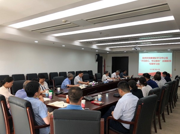 7月26日下午,中国科学院软件研究所召开“不忘初心、牢记使命”主题教育专题党委中心组学习扩大会。研究所领导班子成员,以及党委委员、纪委委员、处级党员领导干部等共22人参加了学习会,会议由党委书记、副所长操云甫主持。
