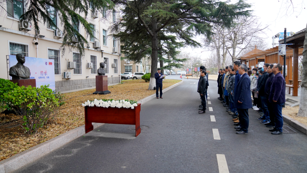 大家在童第周、曾呈奎两位科研先驱铜像前静默鞠躬,并依次上前敬献鲜花,表达对先辈的缅怀与敬重。童第周、曾呈奎以及许许多多的先辈们,从一穷二白中艰难起步,攻坚克难,开拓进取,甘于奉献,至诚报国,为新中国海洋科技事业的起步、创新与发展奉献毕生心血,做出重要贡献,要永远铭记他们的家国情怀、学术风范和卓越贡献,学习他们的爱国精神、科学精神、奉献精神和育人精神。