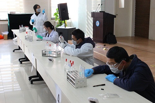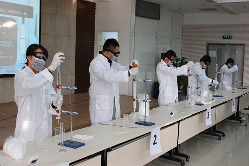 元素周期表,在有些人看来是一堆数字的排列组合,而在另外一些人看来则如同纵横交错的棋盘。参赛选手们为将各个元素的位置印在自己的脑海里,可谓是各显神通,手段尽出。元素拼图环节中,有两位选手是来自低温方向的研究生,其中的杨志强同学还获得了该项比赛的第二名,充分体现出理化所多学科交叉的特色。离子检测和精确装柱这两项比赛更具有专业性,在比赛过程中,选手们都统一地穿戴一次性手套、护目镜以及实验服,体现出参赛选手们扎实的基本实验素养。赛后,评委老师对选手们取得的成绩给予了充分肯定,也对他们在实验过程中操作有欠缺的地方给予了有针对性的指导,使选手和场下观众获益匪浅。
