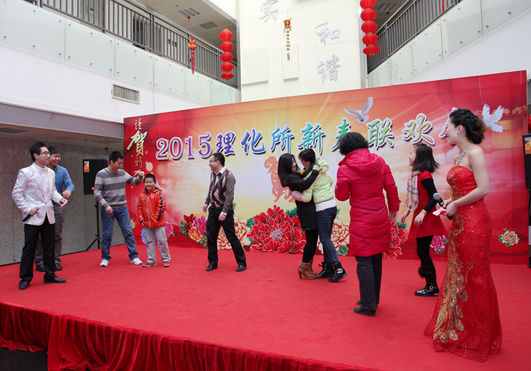 李嫕和大家一起回顾了理化所2014年取得的多项成就,并代表理化所工会委员会向全体工会会员、向发挥余热的离退休老同志们、向刻苦求学的莘莘学子们,致以诚挚的节日问候。随后,所长张丽萍,党委书记书记黄勇,副所长汪鹏飞、雷文强、刘新建上台,为全所人员送上节日的祝福。张丽萍代表所党政领导班,向过去一年里为理化家园付出辛劳和汗水的大家表示衷心的感谢,并祝愿在新的一年里,小朋友健康快乐地成长,年轻朋友拥有更多浪漫时光,中年朋友放松心情,离退休老同志尽情享受美好生活,祝福理化所健康发展、蒸蒸日上,祝福伟大的祖国更加繁荣富强。