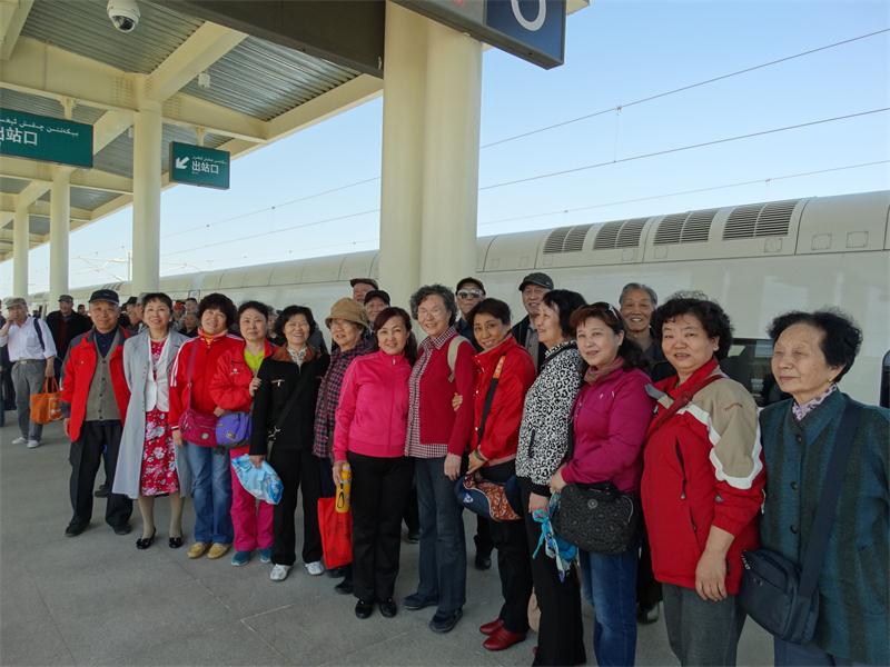 4月10日上午,在中国科学院新疆分院领导班子的关心支持下,负责离退休工作人员组织分院机关一百多位离退休职工乘坐高铁抵达吐鲁番开展踏青之旅。退休职工得知要乘坐高铁到吐鲁番后都十分兴奋,上车后大家坐在舒适整洁的座位上亲身感受了动车的独特魅力。