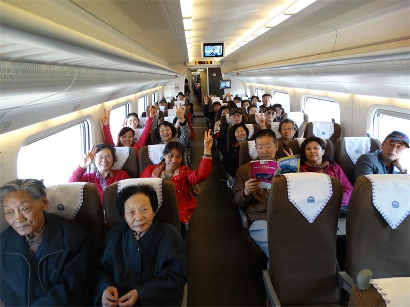 结束了一天的行程后,退休职工乘坐高铁满载而归。此次活动,得到了机关退休职工的好评。