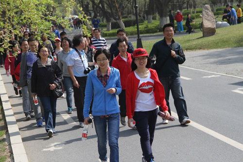 上午9时许活动开始,工会主席孙晓峰发表了热情洋溢的讲话,他号召大家积极参与健身活动,以良好的身心状态投入到工作和生活中,并宣布“全民健身月”健身走正式开始。大家沿着奥林匹克健身路一直前行,还有的同志越过三好桥,“暴走”到工农桥才返回。大家边走边欣赏沿途美丽的春光,畅谈着学习生活、科研工作。在三好桥折返处,大家自发聚集在金属所旗帜下合影留念,分享着健身走带来的欢乐气氛。