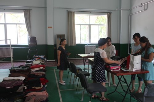 冒着38度的高温,中心职工和研究生纷纷拿来自家闲置的衣物捐到中心设置的捐赠点。一天时间,就收到了爱心衣物2658件,中心工作人员对衣物逐一进行分类整理、打包,并转送到社区服务中心。这些衣物将统一由临潼社区慈善会送到边远山区贫困人员手中。