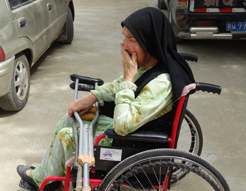 托合提妮萨·玉苏普老人今年75岁了,一直依靠双拐行走,如今坐在舒适的轮椅上,流下了激动的泪水,面对工作组和村干部,嘴里一个劲地念叨着“热合曼特(谢谢)”,看到老人苍老年迈的脸庞和激动不已的泪水,不禁让大家感到一阵心酸。