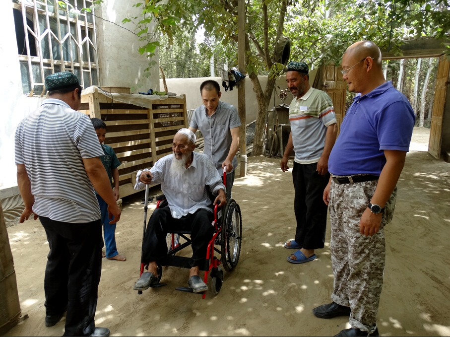 中国科学院新疆分院“访惠聚”活动住村工作组住村以来,通过不断入户走访,了解到农村残疾人较多,且年龄偏大,行动不便,为解决这一难点问题,工作组主动与自治区残联联系协调,获得10辆轮椅的捐赠。工作组希望通过小小的轮椅,帮助残疾老人,温暖人心。