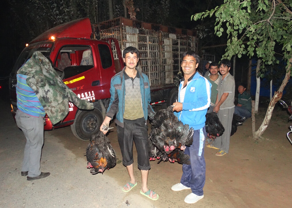 8月11日,中国科学院新疆分院住阿依玛克村工作组全体成员从晚上23点到第二天凌晨4点,一直帮助养鸡户抓鸡,并且认真记录出栏鸡的数量,协助运输到屠宰场。按照项目计划,新疆分院住阿依玛克村工作组实施的“林下养鸡综合技术示范与推广”项目第一期示范户的2202只黑鸡全部出栏销售,顺利完成养殖任务。