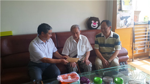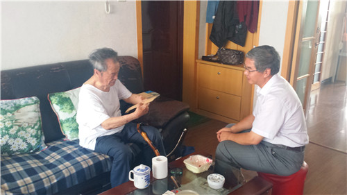 今年是抗日战争胜利70周年。为体现对抗战时期参加革命的离休干部的关怀和照顾,中国科学院新疆生态与地理研究所党委书记田长彦、副所长管开云、党办人事处处长许英勤于8月21日上午走访慰问了抗战时期参加革命的离休干部岳镇和彭瘦,并送去慰问金。