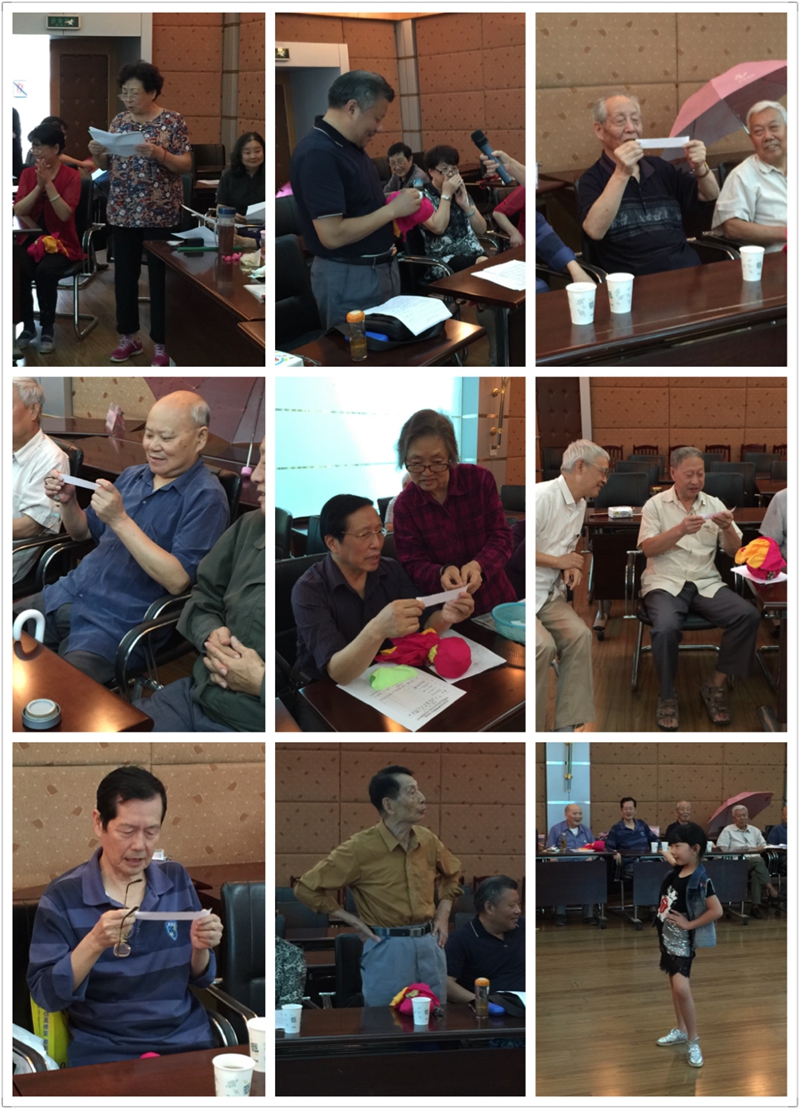 然后,举行了形式活泼的抗战知识竞赛。工作人员事行精心准备了40余道抗战知识题,采用击鼓传花的形式回答问题,中间穿插着唱歌、跳舞、讲故事等娱乐节目。由一名工作人员背对着大家击鼓,鼓声停时花传到谁,由谁抽题目回答。在答题的过程中,巩固了大家对抗战时期相关史实的记忆。有的题目由于大家印象深刻,当题目念出来,大家都异口同声回答出正确答案;有的题目记得不是太牢,通过了解正确答案后重新加深了印象。此外,离休干部余清泰同志结合亲身经历,给大家讲述了解放前地下党人不顾个人安危,为了党的事业抛头颅洒热血的故事,使大家深受教育。