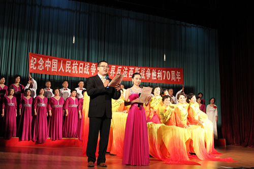 为纪念中国人民抗日战争暨世界反法西斯战争胜利70周年,铭记历史、珍惜和平,9月1日,中国科学院京区离退休干部在中国科学院大学礼堂举行纪念抗战胜利70周年老年文艺展示活动。中科院离退休干部工作局局长孙建国及京区部分研究所负责人、离退休老同志百余人出席。离退休干部工作局副局长李杰主持文艺展示活动。