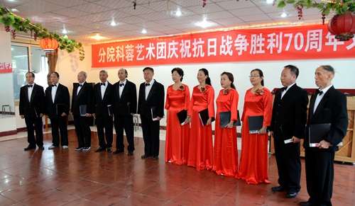 来自院属成都地区8个单位的老同志,以抗战的经典歌曲为主旋律,表演了形式多样的文艺节目庆祝抗战胜利70周年。