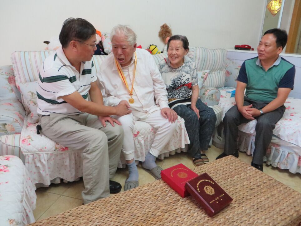 在纪念中国人民抗日战争暨世界反法西斯战争胜利70周年阅兵式后,9月6日,中国科学院光电技术研究所党委副书记、副所长魏全忠在离退休办公室工作人员陪同下,到抗战时期离休干部战启先家中颁发抗战胜利70周年纪念章。为战老佩戴上纪念章后,战老激动地说:感谢党和国家的褒奖,愿我们的国家繁荣昌盛,早日实现中华民族复兴的伟大梦想。