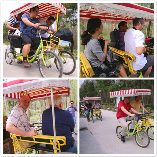在欢快的旅途中,来自美国橡树岭国家实验室的Martin Peng教授为各位外宾讲述了中秋节的来历,以及有关嫦娥和月饼的传说,于是大家也开始分享各自国家的节日风俗。到达滨湖湿地公园后,各位外宾骑自行车游览了园区美景并观赏了巢湖风光。9月正是合肥市郊大圩镇葡萄丰收的季节,在午后的阳光中大家跨上篮子走入葡萄园,品尝了新鲜甜美的果实,体会了满载而归的欢乐。