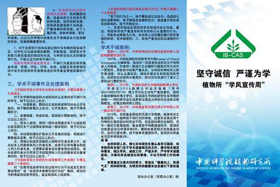 良好的学风,是落实“率先行动”、实现改革创新发展最基本的保障,也是科技工作积极、健康、有序发展的基本保证。为加强学风建设,中国科学院植物研究所自2013年起每年定期开展“学风宣传周”活动。今年9月21日至25日,植物所开展了第三期也是本年度的“学风宣传周”活动。
