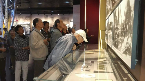 在中国人民抗日战争纪念馆,老党员们都已不是第一次前来,重新布展后,大家依然认真地参观了从第一部分到第八部分包括照片和实物的详细内容。老同志们的脸上时而严肃,时而愤怒,时而又露出会心的微笑,感情已全身心投入到了展览内容中。特别是在“英勇的战歌”——东北抗日联军历史图片展前,大家第一次比较系统地了解了东北抗联在白山黑水的广袤大地上,在中国共产党的领导下与日寇进行的艰苦卓绝的异常惨烈的英勇斗争。东北抗联不畏强暴、英勇战斗的历史随着岁月的消失虽已渐渐远去,但当年那英勇悲壮、可歌可泣的一幕幕斗争场景却不会从人们的记忆中消失。