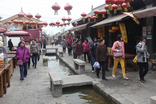 首先,大家来到位于西咸新区的茯茶小镇。茯茶小镇是泾阳以茯砖茶文化为依托打造的茯茶文化旅游基地,集合了茯茶文化、关中民俗文化和关中特色生活。走进泾阳县茯茶小镇,潺潺流水蜿蜒,水车悠悠转动,沿着青石板一路向前,水边篱笆墙上五颜六色的古式招牌旗迎风飘展,关中特色茶店、小吃店、手工作坊鳞次栉比,大家一边品尝着地方特色美食,一边欣赏周边的民俗风情,享受着远离都市的清幽与放松,心中充满了闲适和惬意。