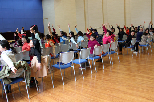 活动中,在瑜伽教练的带领下,大家借助一张椅子、一条伸展带,从调整呼吸、放松肩颈开始,逐步学习了一些消除颈椎、肩、背疲劳的办公室瑜伽动作,锻炼了身体,放松了心情,度过了一个“健康”的节日。