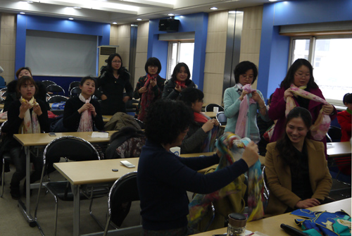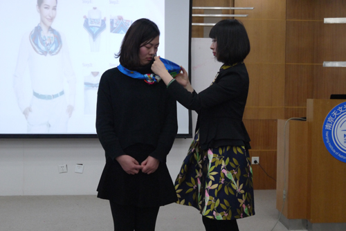 老师示范丝巾结法