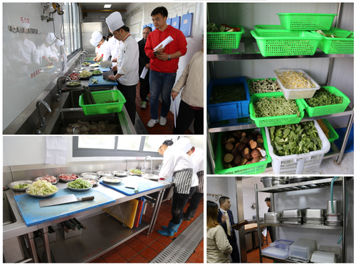 在餐厅经理的带领下,师生们零距离查看了厨房的每一个角落,包括洗涤间、配菜间、食品库房、烹饪间、备餐间、留样间、冷库等食物处理流程的重要场所,并从食材、环境、口味等全方位了解了食堂餐饮管理工作及食品制作过程。