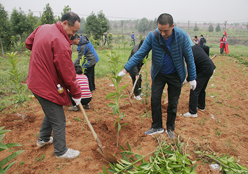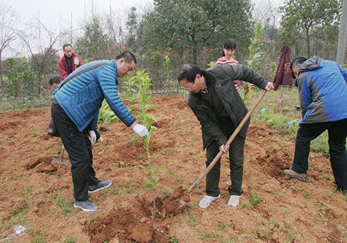 简单的分工完毕之后,大家就拿上工具投入到植树活动中。在现场工作人员的指导下,大家或挖坑、或搬运苗木、或扶苗、或夯土,你一耙、我一锹,每个人都各尽其责,挥洒着汗水,齐心协力,整个现场热火朝天,充满了欢声笑语,忙得不亦乐乎。植树途中,大家还认真学习相关的植物知识,激发大家造林的热情。经过一番热火朝天的劳动,一棵棵新栽种的苗木迎风挺立。