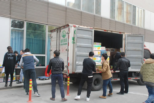 中科集团志愿者搬运苹果