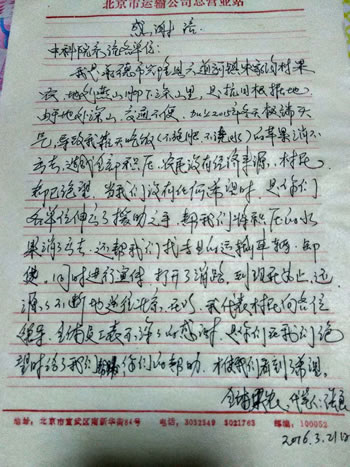 朱家沟老乡感谢信