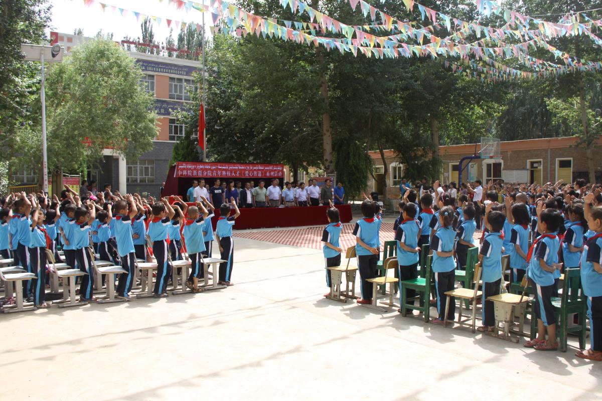 6月23日下午,雨后放晴,碧空如洗,中国科学院新疆分院青年科技人才“爱心传递”活动在加汗巴格乡中心小学举行,受到了乡中心小学500多名小学生的热烈欢迎。新疆分院纪检组组长安尼瓦尔·买买提,新疆分院住村工作组总领队、新疆生态与地理研究所副所长吉力力·阿不都外力,加汗巴格乡中心小学校长艾尼瓦尔主持活动并讲话。新疆分院科技合作处副处长王国平、组织人事处副处长周玉珍以及新疆分院系统各单位青年科技人才代表和新疆分院住村工作组全体成员参加了活动。