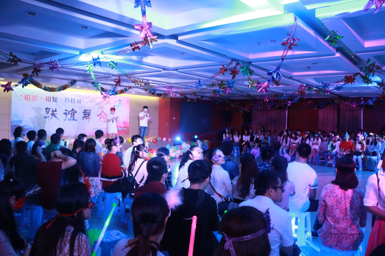 此次联谊舞会吸引了苏州医工所、苏州科技城医院和苏州科技城实验小学的青年职工近300人参加,所有参加人员都戴上了提前准备的舞会面具,手里拿着闪烁的荧光棒。联谊舞会在苏州市歌舞团歌唱家悠扬的歌声中拉开了序幕,在主持人的带领下,在场青年职工前后搭着肩,跳起了欢快的《兔子舞》,现场气氛立刻欢快起来;苏州医工所王林波、焦阳和科技城医院的郑泽光还分别带来了歌曲《你知道我在等你吗》、《悟空》和《如果爱》,青年职工男女相互搭档为他们伴舞;歌舞间隙,现场还开展了背靠背夹气球、负重俯卧撑、快速收集物品等轻松愉快的小游戏,这些游戏让大家在合作中互相认识,拉近了彼此之间的距离。最后,不但有两对青年职工成功现场牵手,还有很多男女青年职工相互加了微信,并将在之后加深交流和联系;同时,苏州医工所部分职工还与科技城医院的医生就相关项目进行了沟通并达成了合作意向。