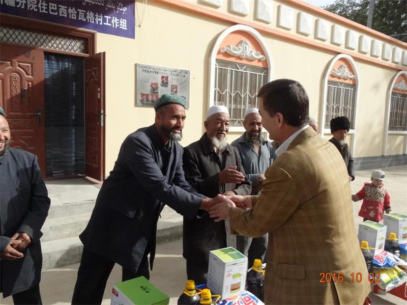 在国庆节到来之际,为深入贯彻并落实新疆自治区“访惠聚”工作精神,中国科学院新疆分院住村工作组积极筹备,将节日的祝福送到了村干部、“四老人员”、爱国宗教人士、贫困低保人员代表手中。