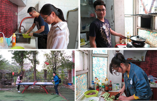经过真心话大冒险、猜数字等趣味性活动热身之后,大家就紧锣密鼓地展开了厨艺比赛。各队伍分工有序,洗菜、择菜、淘米、切菜,掌勺的自是大显身手,不会做菜的也总能搭把手。有些在外面玩耍的同学循着菜香时不时窜进厨房,忍不住偷一嘴,尝完还不禁连连搭腔“真好吃,怎么做的?哎呀,好烫!”叮叮当当、乒乒乓乓,真是好不热闹。近午时,经过近两个小时的奋战,鸳鸯火锅,爆炒腰花,五香豆干,红烧肉等一道道美味佳肴已端上桌。看着如此丰盛的午餐,大家早已口水直流,顾不上点评,抢着开动了。你一言我一语,一片欢声笑语,真真是家的味道!