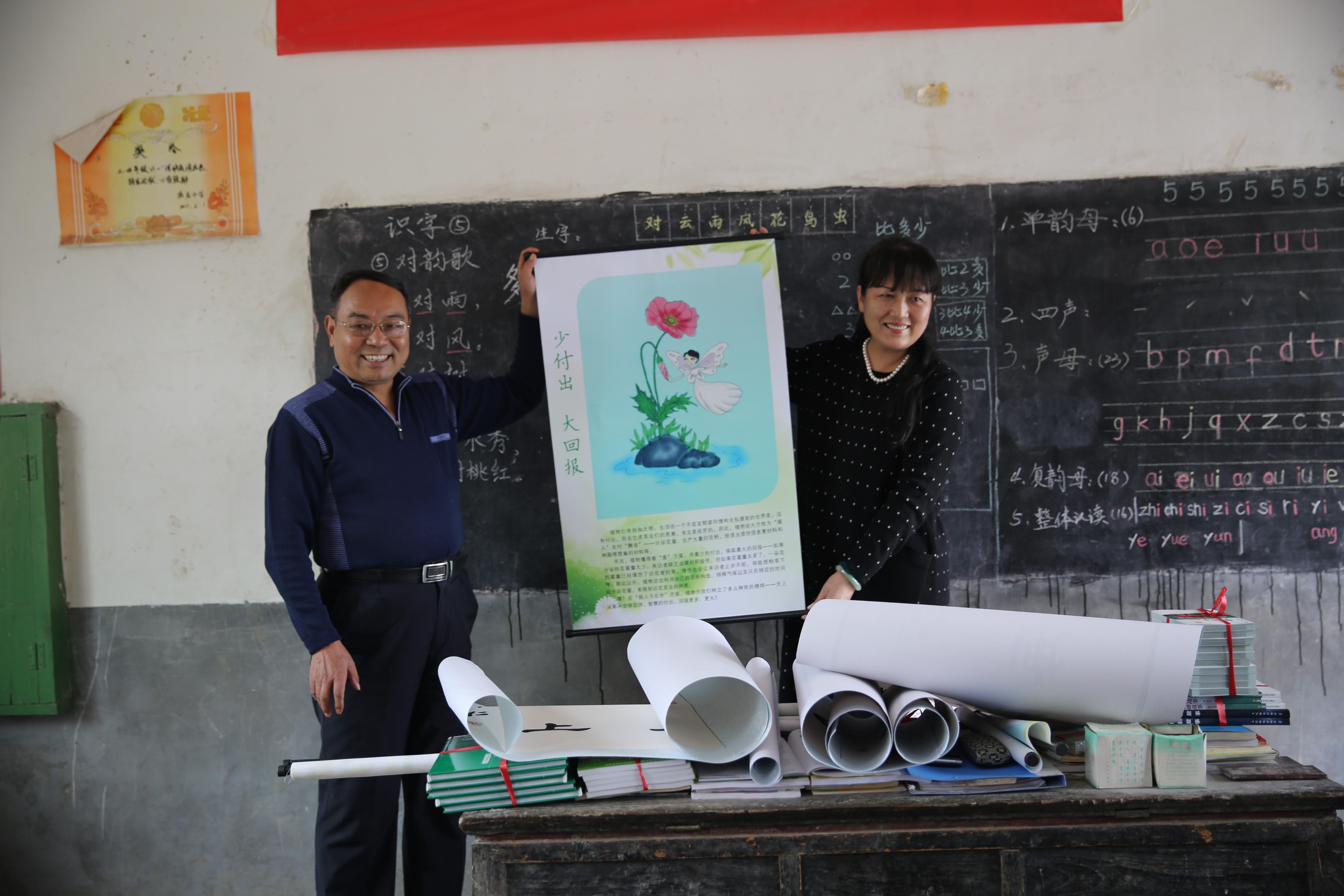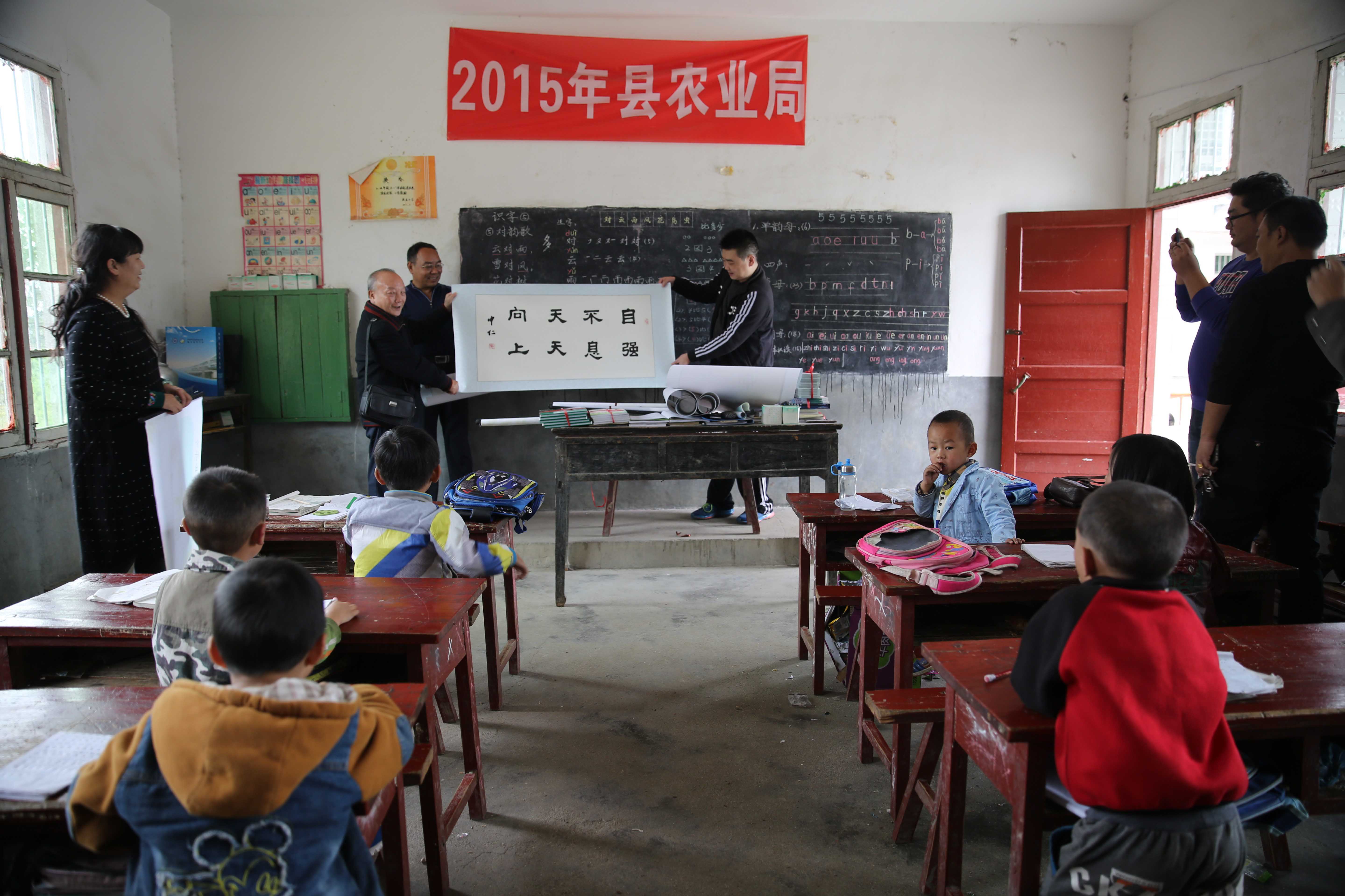 中科院科普团西安分团科普团将带来的植物、动物、时间、食品健康等图文并茂的科普书籍和植物科普漫画挂图,以及米、面、油等物品赠给仅有两位老师只有6名学生的学校。陈中仁赠送了数幅特意为教师、学生书写的“培育栋梁”“自强不息 天天向上”等书法作品,感谢山村教师的教育坚守,鼓励孩子们奋发图强、努力读书;祁云枝作为《植物智慧》及挂图的作者,亲切地给孩子们讲解植物的生物学习性与人生智慧的比喻联想,希望启迪孩子们的科学智慧萌芽。