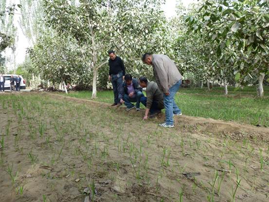 每年10月上旬是阿依玛克村村民播种大蒜的农忙时节。为了增加贫困村民的经济收入,做好精准扶贫和科技惠民的“访惠聚”工作,中国科学院新疆分院住阿依玛克村工作组通过结合中科院新疆生态与地理研究所科技服务网络项目(STS)进一步开展大蒜种植的调研工作。